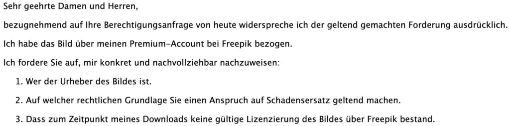Ich habe Copytrack eine Antwort-Mail auf die heutige »Mahnung« geschickt und darauf hingewiesen, dass ich das Foto bei Freepik erworben habe.