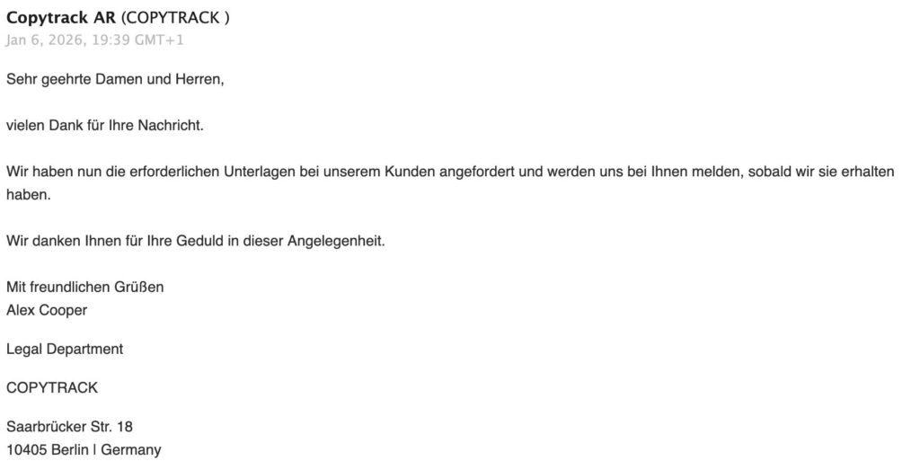 Seit einiger Zeit geistern sogenannte »Berechtigungsanfragen« von »Copytrack« durchs Internet.
