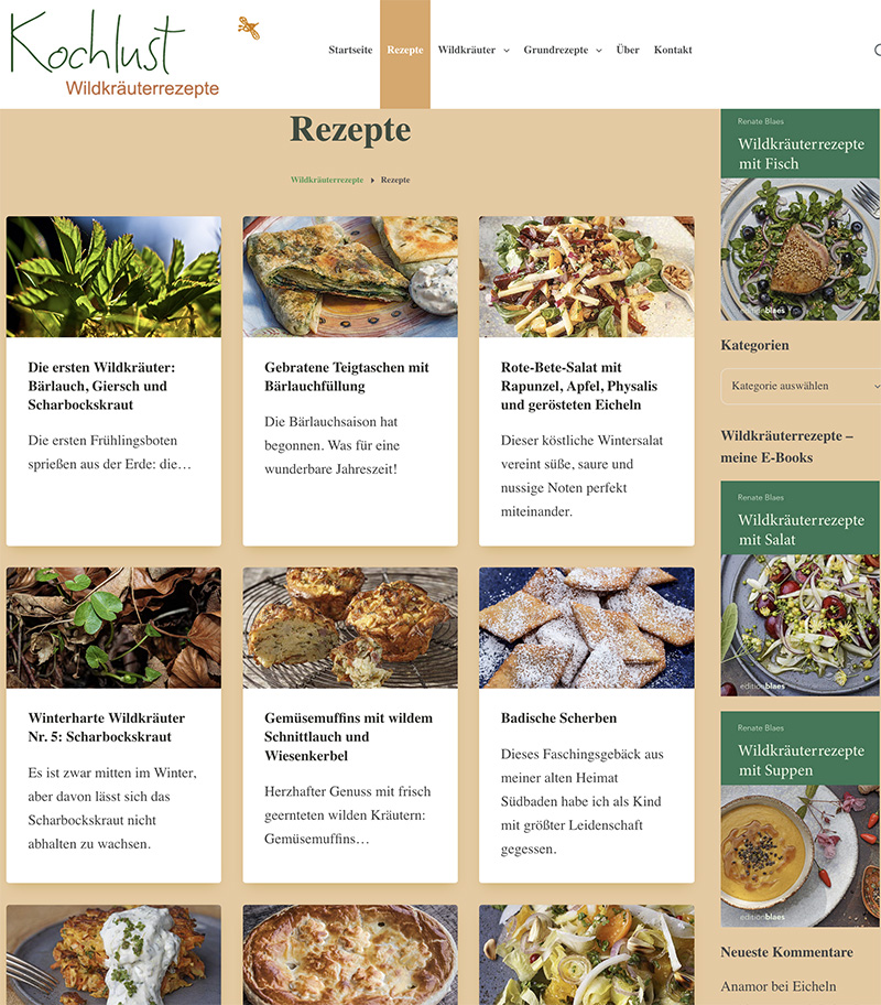 Seit sechs Jahren erblüht auf meinem Wildkräuterblog Kochlust eine stetig wachsende Sammlung außergewöhnlicher Kreationen, in denen ich die verborgenen Schätze von Wald und Wiese mit Leidenschaft und Freude zu leckeren Rezepten verarbeite.