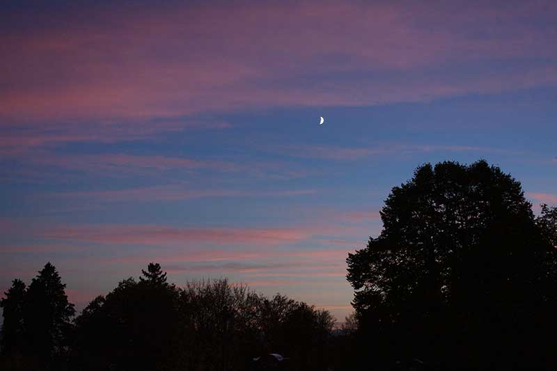 Der Blick von meiner kleinen Dachterrasse mit Blick auf den Ammersee ist nicht nur beim Sonnenaufgang schön, sondern auch beim Sonnenuntergang. Und manchmal ist der Ammersee dabei auch nicht zu sehen, weil ich in eine andere Richtung schaue. Nämlich nach Süden. Der See liegt aber östlich … was aber auch nichts macht.